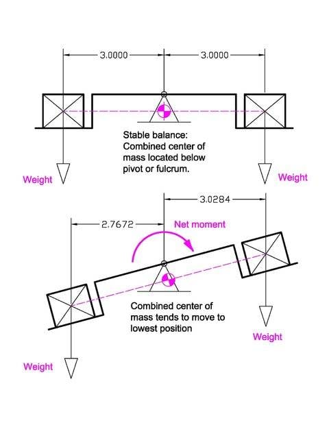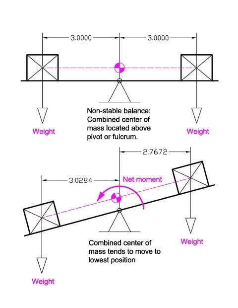 However the lever initially is tilted all the way to the left side. So we locked the mechanism then placed the weight/force at both ends, and then we release the mechanism.