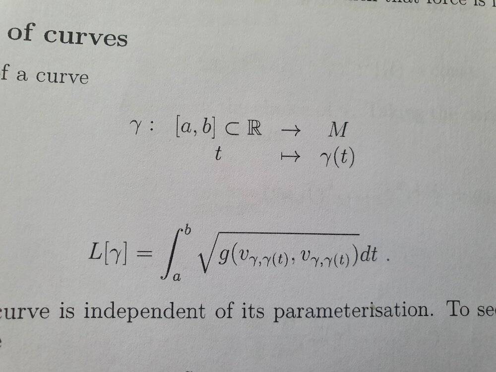 My 2. question is about the length of curves on a manifold, which is given by the formula in the pic I attached.