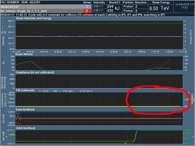 The timetable for the week is filled in (see below). A lot of the commissioning steps have been completed already, but there are still a few more to be done in the next couple of weeks. It's going to be solid physics from Friday afternoon and over the weekend. Optimistically, if a step in https://lpc.web.cern.ch/RampupPolicies.htm takes 4 or 5 shifts (20 hours stable beams in 3 fills), the 1200b step could start on Sunday morning. Compare this with the schedule for the year, which says 1200b on 11th May.