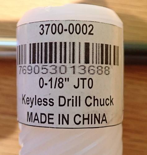 I just received a solid steel drill chuck that arrived in a nice plastic container. The label on the front side is self explanatory: