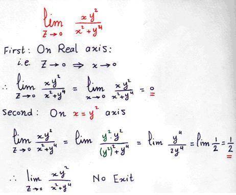 Dick said:lim(z->0) is not the same as lim(x->0) or lim(y->0). It's lim(x->0 AND y->0).