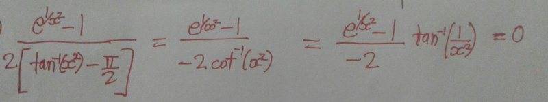 The discussion revolves around finding the limit as x approaches infinity for the expression (e^(x^-2)-1)/(2arctan(x^2) - pi). The problem involves concepts from calculus, particularly limits and inverse trigonometric functions.