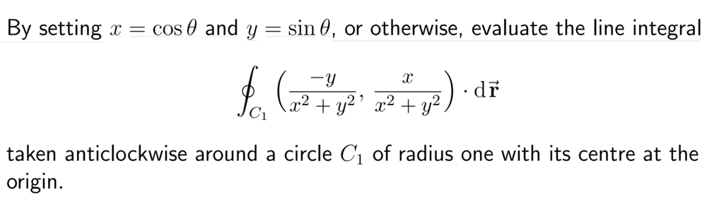 Hi everyone, I am confused in this question. First I solved it by noticing that the gradient of the function will be zero (without substitution the hit) I got that it's a conservative field so the integral should be zero since it's closed path. Then I solved it by the hit and convert it as any line integral like any normal integral in terms of the parameter which is theta in this case and evaluate it from zero to 2pi. I got an answer of 2pi. Which method is correct and why.