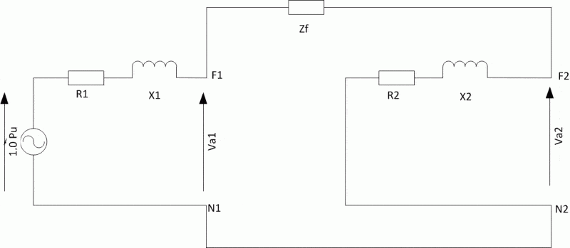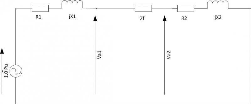 In calculating a line-line fault, the Positive and Negative Phase Sequence networks are placed in parallel, while the zero phase sequence is excluded. This configuration does not create a series circuit, as the currents in different parts of the network are not equal (i1≠i2≠if). When performing calculations, it is essential to use the per unit (p.u.) system, ensuring that all voltages, currents, and impedances are expressed in p.u. and denoted in lowercase letters.