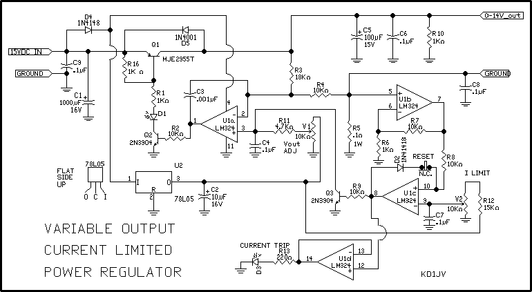 The unit powers on, fan runs, but the display reads 0.00V and 0.00A (correct readings) and the current limit light is on.