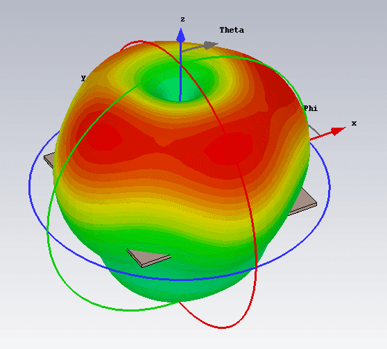 Also tried to calculate the inset position so i can match the feed to 50 Ohm.I made a first design in CST and i just can not get rid of the "zero point" in the middle of the radiation pattern.