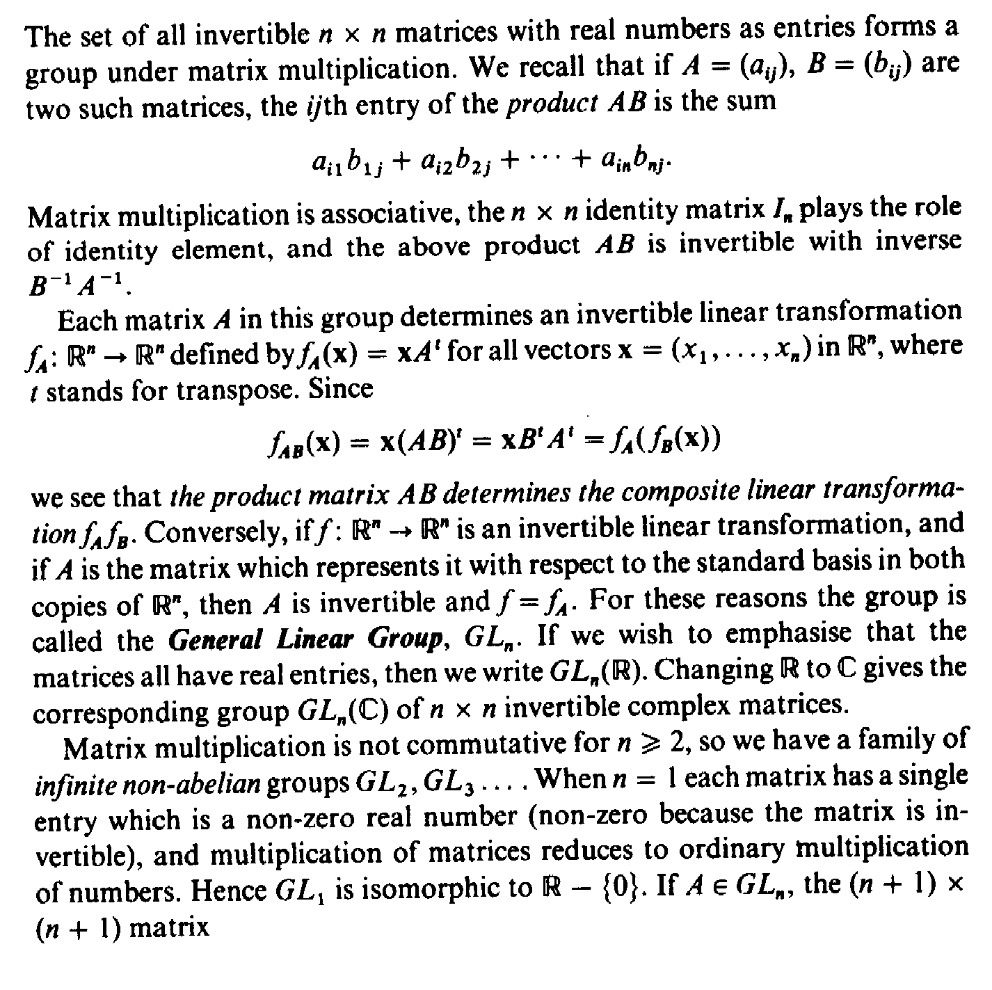 " ... ... Each matrix $$A$$ in this group determines an invertible linear transformation $$f_A: \mathbb{R} \to \mathbb{R}$$ defined by $$f_A(x) = x A^t$$ ... ... "I know that one may define entities how one wishes ... but why does Armstrong define $$f$$ in terms of the transpose of $$A$$ rather than just simply $$A$$ ... there must be some reason or advantage to this ... but what is it? Can someone help to explain ...