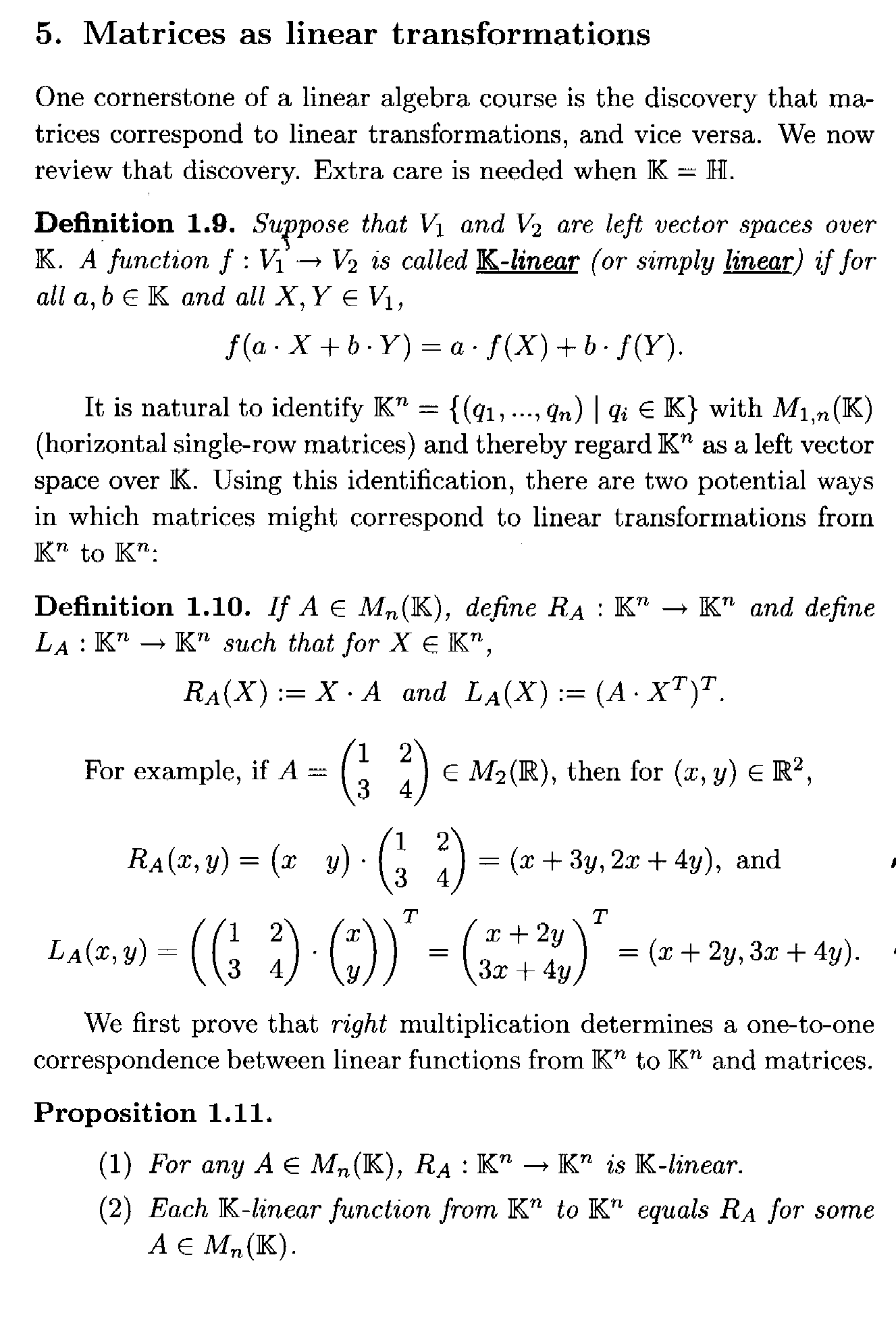 The above post also refers to Chapter 1, Section 5 of Kristopher Tapp's book, "Matrix Groups for Undergraduates" ... so I am providing the relevant text ... as follows:View attachment 9569Note that Tapp uses $$\mathbb{K}$$ to refer to one of the real numbers, the complex numbers or the quaternions ...Hope that helps,