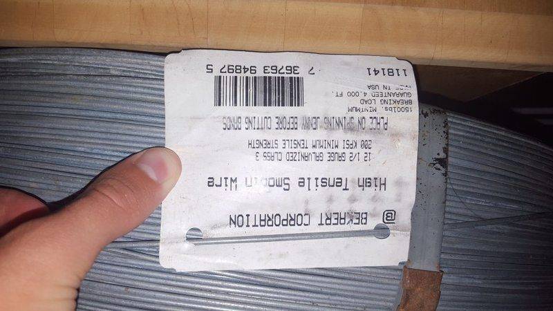 The zip line will be made from 12.5 gauge (2 mm) galvanized class 3 200 KPSI minimum tensile strength, high tensile smooth wire. It has a 680 kg (1500 lbs) minimum breaking load. I purchased the wire without the intention for it to support a rider. I would like to use this wire, purchasing a lower gauge (thicker wire) is not possible. Here is a link to the product I have. I attached a image of the product tag as well.