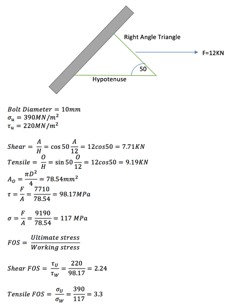 Ok so I have been presented with a bolt which has shear and tension acting upon it. I have done my best to 'draw' and recreate the problem with the information provided.