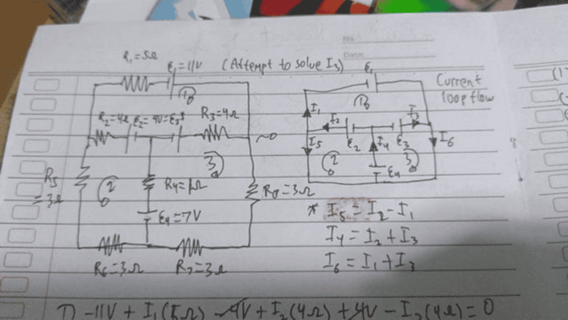 Here's the problem. My teacher said I can determine whatever the loop direction is (Counterclockwise or Clockwise). My problem is with finding the exact value when given 3 equations. Can you help me?