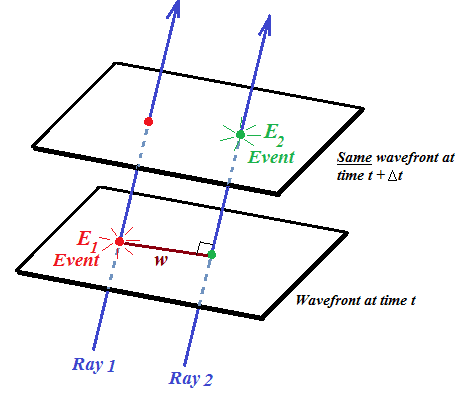 For a plane, monochromatic wave, define the width of a wavefront to be the distance between two points on a given wavefront at a given instant in time in some reference frame. Show that this width is the same in all frames using 4-vectors and