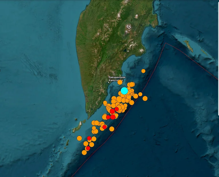 The discussion centers around the M 8.8 earthquake off the east coast of Kamchatka, including its aftershocks and potential impacts on the Pacific region, such as tsunami warnings and volcanic activity. Participants explore the implications for ocean currents and climate phenomena like La Niña and El Niño.