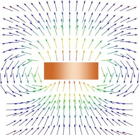 I have a NdFeB ring magnet, 1.75" outer diameter x 1.375" inner diameter x 0.25" thick, N40 grade. It is axially magnetized so that the north pole is toward one face and the south pole is toward the opposite face. The following image shows the well-known theoretical orientation of the magnetic field around the magnet, given that the north pole is on top: