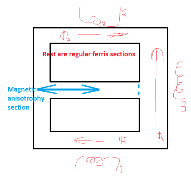 For example, say you had a cube, could you do something to it that on one axis, you could magnetise and reverse the domains cyclically, as any electromotive core, but on the perpendicular plane of the cube the domains will resist aligning? So you can pass flux easily one one plane, but the reluctance is much higher on another plane?