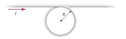 and two long, straight sections as shown in the figure. The wire lies in the plane of the paper and carries a current