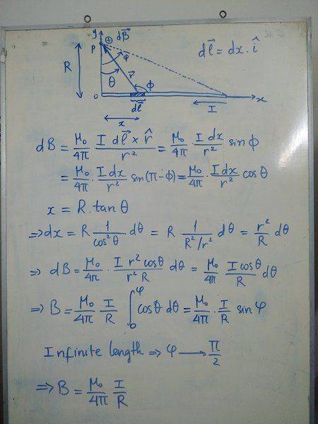 - Participants explore the difference between the magnetic field from an infinitely long wire versus a semi-infinite wire, questioning how the end effects influence the field calculation. There is discussion about whether the field should be halved due to the semi-infinite nature of the wire.