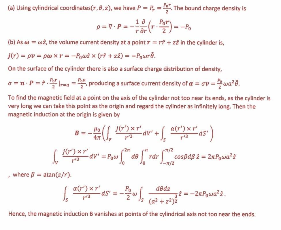 (b) If the cylinder is rotated with a constant angular velocity ##\omega## about its axis without change in P, what is the magnetic field on the axis of the cylinder at point not too