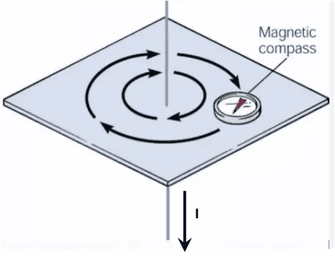 - Thoughts in my mind: If the needle were to be in the same plane as the magnetic field (which is the plane perpendicular, not the same, as of the original wire.) it would have pointed in the direction of the magnetic field at that (or any) point, but how do we make the needle turn in a 3D space when it is only allowed to orient itself in a 2D space.