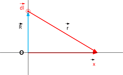 The discussion revolves around the derivation of the magnetic field strength due to a circular loop using Biot-Savart's law, specifically addressing the geometric relationships between the vectors involved in the calculation, such as the angle between the differential length element and the position vector.