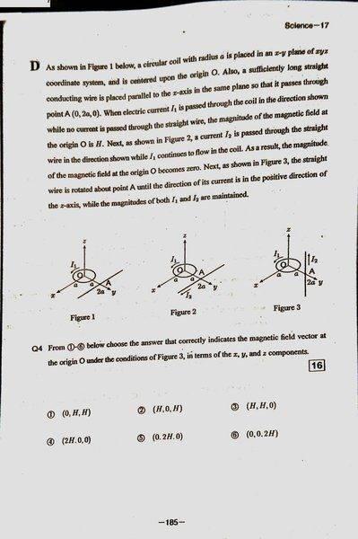 First One: I got (2) (H, O, H) by using Fleming's second right-hand rule and the equation for Magnetic field strength being directly proportional to current, and inversely to the distance from the wire