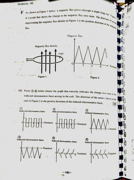 Second One: I got (2) By using Faraday's Law and Lenz's law. Looking at the constant change in flux against time, and the graph flipped over the x-axis due to Lenz's law telling us that an induced emf opposes the change which causes it.