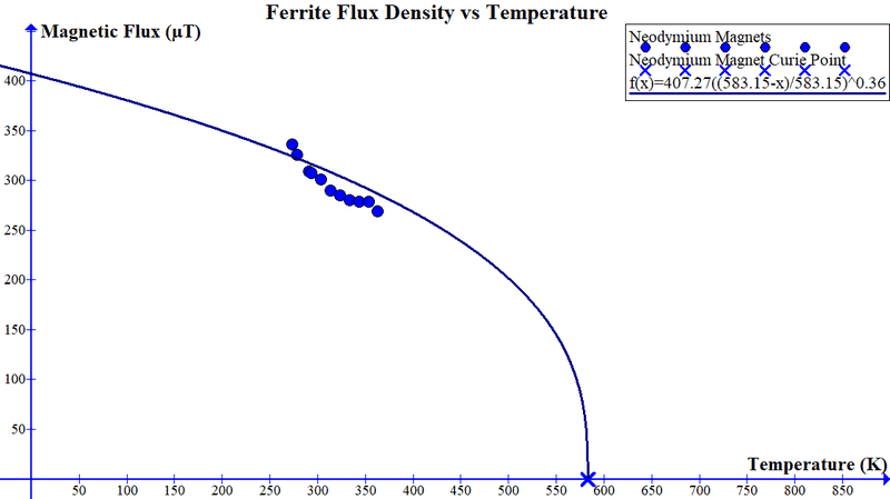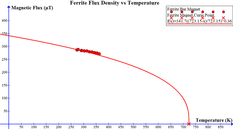 However, when I inserted linear trendlines for my data, they gave an unreasonably high curie point (when there was 0 flux density) for the bar magnets, indicating the trend could not have been linear in order for the flux density to be 0 at the Curie point. Even more perplexing was the fact that the relationship DID seem to be linear for the neodymium magnets!
