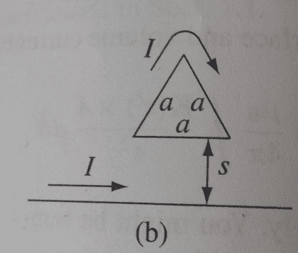 I've found the magnetic field due to the lower wire by using the Biot-Savart law and an example in the book. It is $$\frac{\mu _0 I}{2s\pi} \hat{\phi}$$