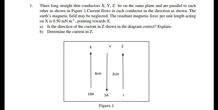 - Three long straight thin conductors X, Y, Z lie on the same plane and are parallel to each
