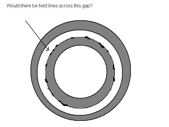 What I'm asking is, would the inner edges of that gap (the sides closest to the center) be one polarity while the outer edge be another? I'm worried that having the iron core continue under the wire would hurt the field...
