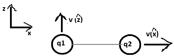 ##\vec B ## due to moving q1 at q2 i.e. ## \vec B_1 ## is along ## \hat y ## direction.