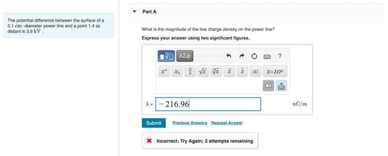 The discussion revolves around understanding the magnitude of the line charge density related to a power line, with participants exploring the underlying physics concepts and mathematical relationships involved.