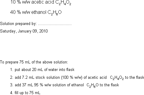 they are saying if we have a 100% stock of acetic acid and 95% stock of ethanol, how do we make them into 40% ethanol and 10% acetic acid and combine to make 75mL