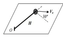 From the image we know that ##\vec{V_0}=\frac{V_0}{2} \hat r - \frac{\sqrt{3}}{2} V_0 \hat{\theta}## then at that instant ##\dot r=\vec {V_0}_{\hat r}=\frac{V_0}{2}## and ##\dot{\theta}=-\frac{\sqrt{3}}{2H} V_0## and we find the angular momentum of the system $$|\vec L|= \frac{\sqrt{3}}{2} m H V_0 = m r^2 \dot{\theta}$$