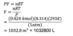(iii) The suppressants are to be released in an environment at normal conditions of pressure and temperature (p=1atm, T=293K). What volume will be occupied by each suppressant after their release into the environment? Assume isothermal expansion in your calculation.