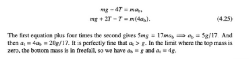 - Consider the triple Atwood’s machine shown in Fig. 4.21. What is the acceleration of the