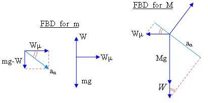 $$W=ma_y=\frac{m}{M}(M+m)g\sin^2\alpha$$