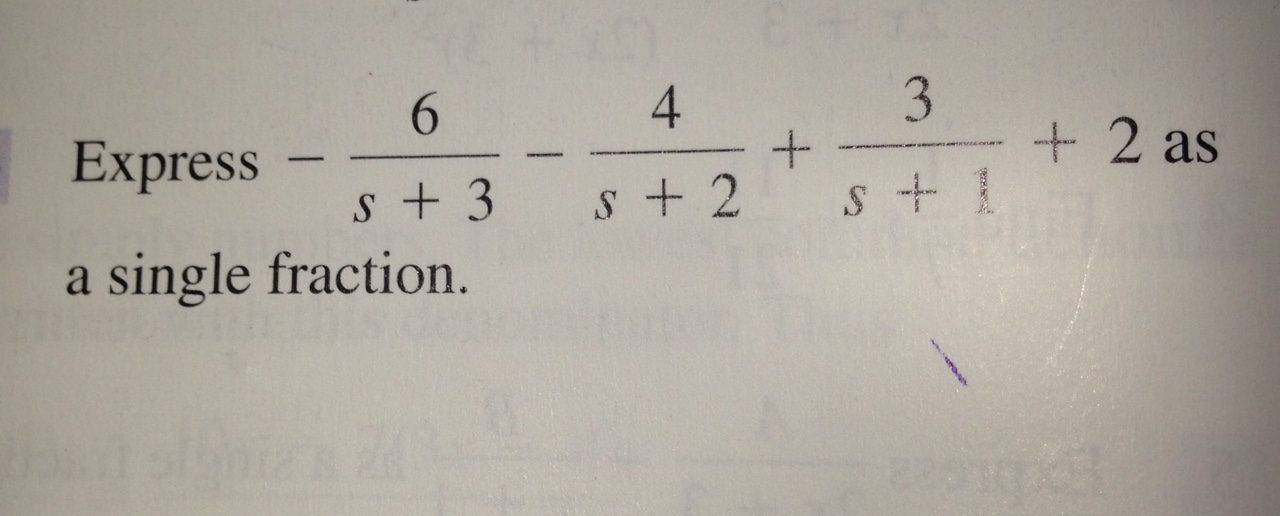 - Another participant provides a detailed breakdown of rewriting the expression $$-\frac{6}{s+3}-\frac{4}{s+2}+\frac{3}{s+1}+2$$ as a single rational expression, emphasizing the importance of finding the LCD and multiplying each term appropriately.