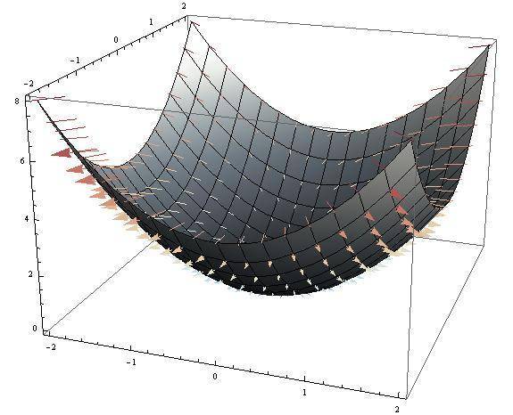 Any idea how I might plot that gradient on the paraboloid ? It would be really unpleasant if I had to do every single vector with Graphics3D[]