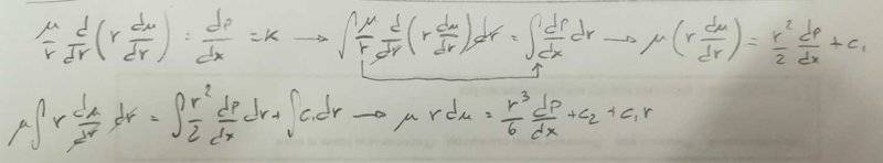 - Another participant questions the treatment of integration constants and boundary conditions, specifically regarding the non-slip condition at the wall of the pipe.