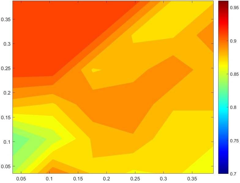 I want to represent data with 2 variables in 2D format. The value is represented by color and the 2 variables as the 2 axis. I am using the contourf function to plot my data: