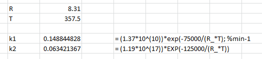 k2 = (1.19*10^(17))*exp(-125000/R*T); %min-1