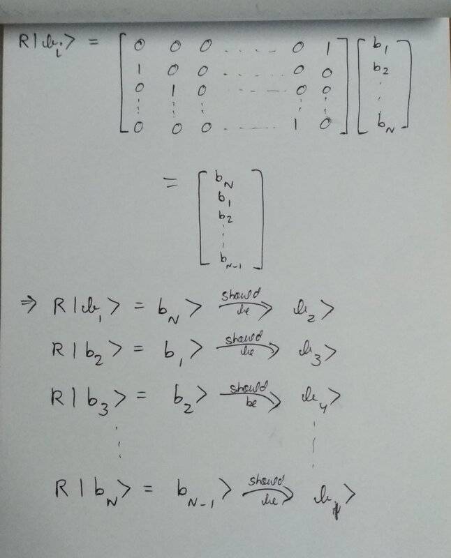 But the problem is, whenever I try to operate R on |bj> basis vectors, I am not getting |b(j+1)> as it should be.
