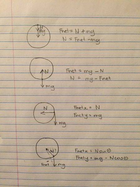- Participants explore the relationship between gravitational force and the normal force exerted by the seat, questioning at which position the normal force is maximized. There are discussions about the effects of centripetal acceleration and the application of Newton's second law to the forces acting on the passenger.