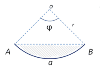 $$\varphi = 2arcsin\left(\frac{a}{2r}\right)$$