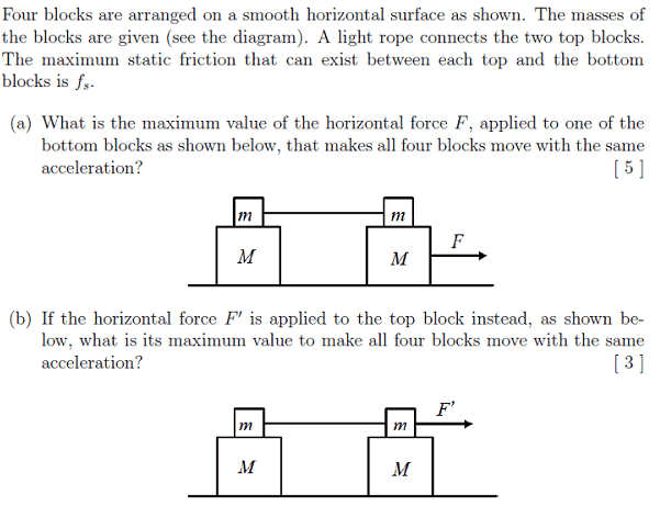 (a) The blocks can have the same acceleration due to static friction.