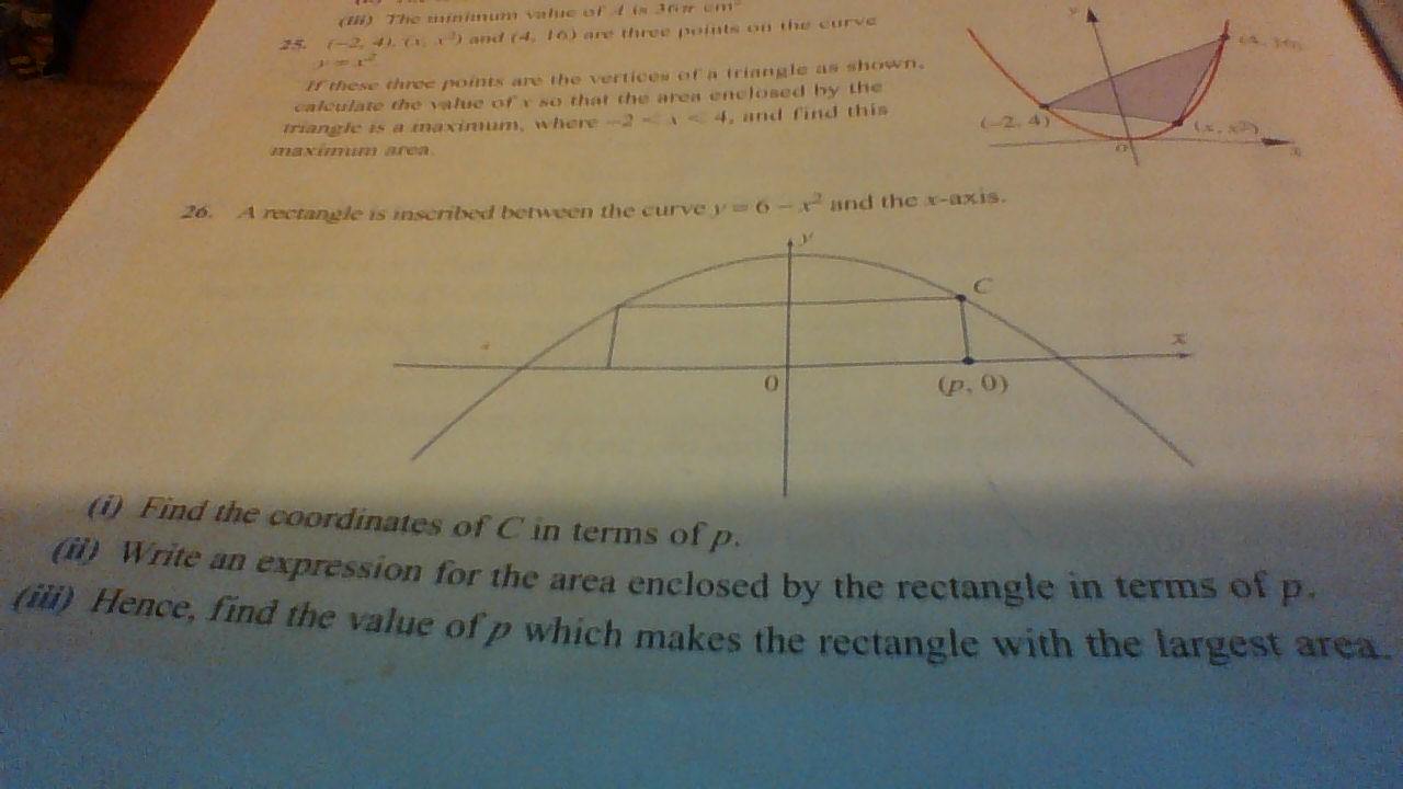 Students working on calculus problems related to maximizing areas, particularly those involving geometric interpretations and triangle area calculations.