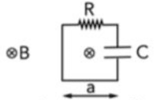 - A square circuit of side ##a=10cm## with a resistance ##R=1k\Omega## and a capacitor ##C=100nF## is in a region of space where there is a ##\vec{B}## field perpendicular to circuit, pointing inward, which changes according to ##\frac{dB}{dt}=-0.01 T/s##
