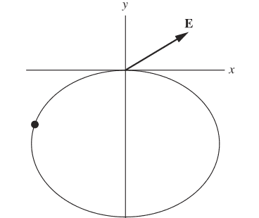 Figure. This point charge creates an electric field at the origin.