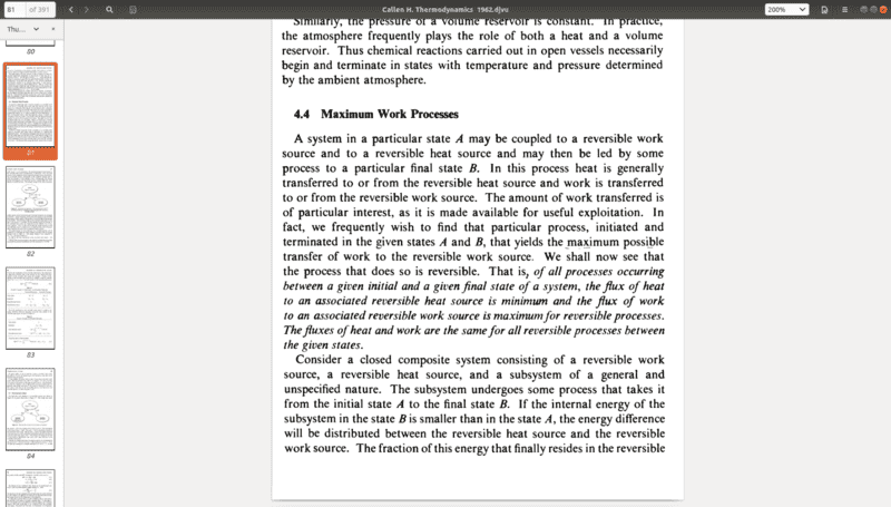 Hi, I have been studying thermodynamics from Herbert Callen's "Thermodynamics : an introduction to the physical theories of equilibrium thermostatics and irreversible thermodynamics"